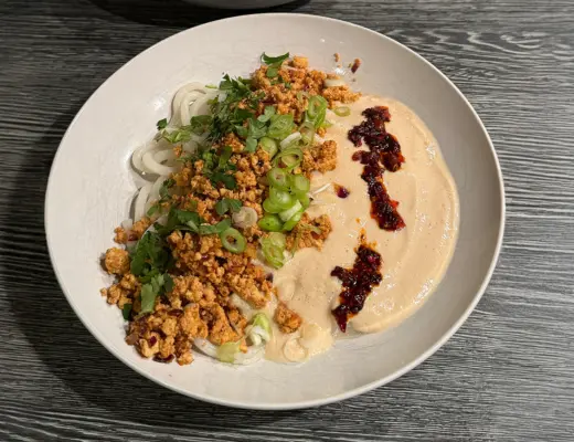 Vegan Mapo Tofu Udon: Nudeln mit cremigem Seidentofu und würzigem Tofu – schnell gekocht, mit…