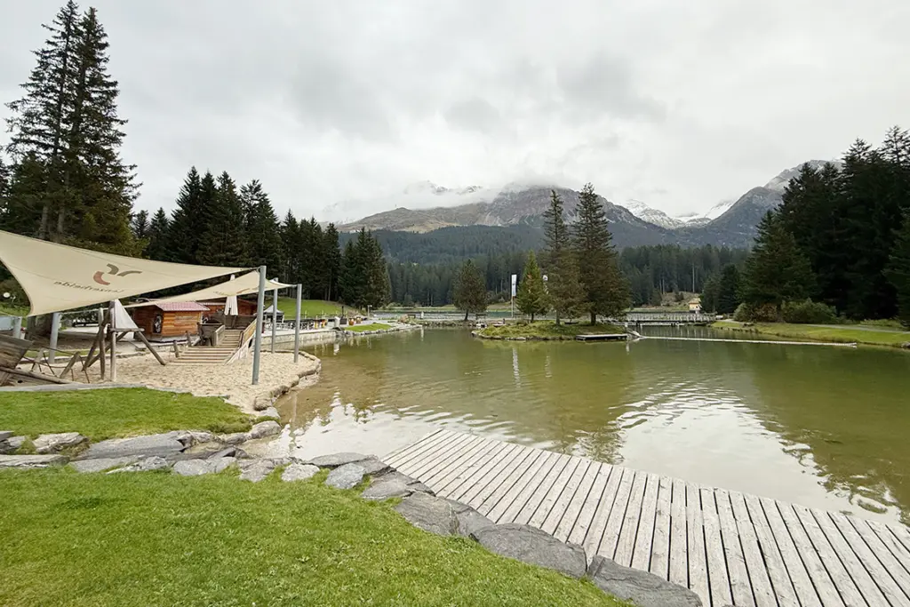Gewohnt haben wir im schönen Waldhaus am See**** in Valbella, direkt am Heidsee. Ein Hotel, das schon seit 1905 Gäste aufnimmt und bewirtet. Seitdem hat sich viel getan und vor allem die Inneneinrichtung der Zimmer und öffentlichen Räume (Restaurant, Bar) wurde modern, aber mit viel alpinen Charme saniert. Die Modernisierung sieht man auch dem kleinen, aber feinen Wellnessbereich an. Finnische Sauna, Dampfbad, private Whirlpoolwannen, Ruhebereiche mit Blick in den Garten und sogar ein Schwimmbecken mit Gegenstromanlage. Die gemütlichen Tagesbetten waren nach dem Saunagang der passende Ort für ein Schläfchen.