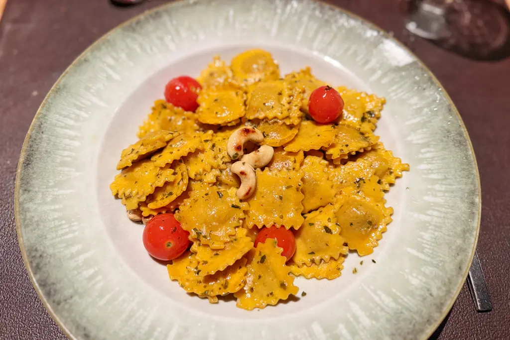 → Der »Pastaplausch« war lecker und abwechslungsreich, inklusive zwei veganen Optionen. Toll, dass es zu dem Pasta-Gericht auch Suppe oder Salat gab.