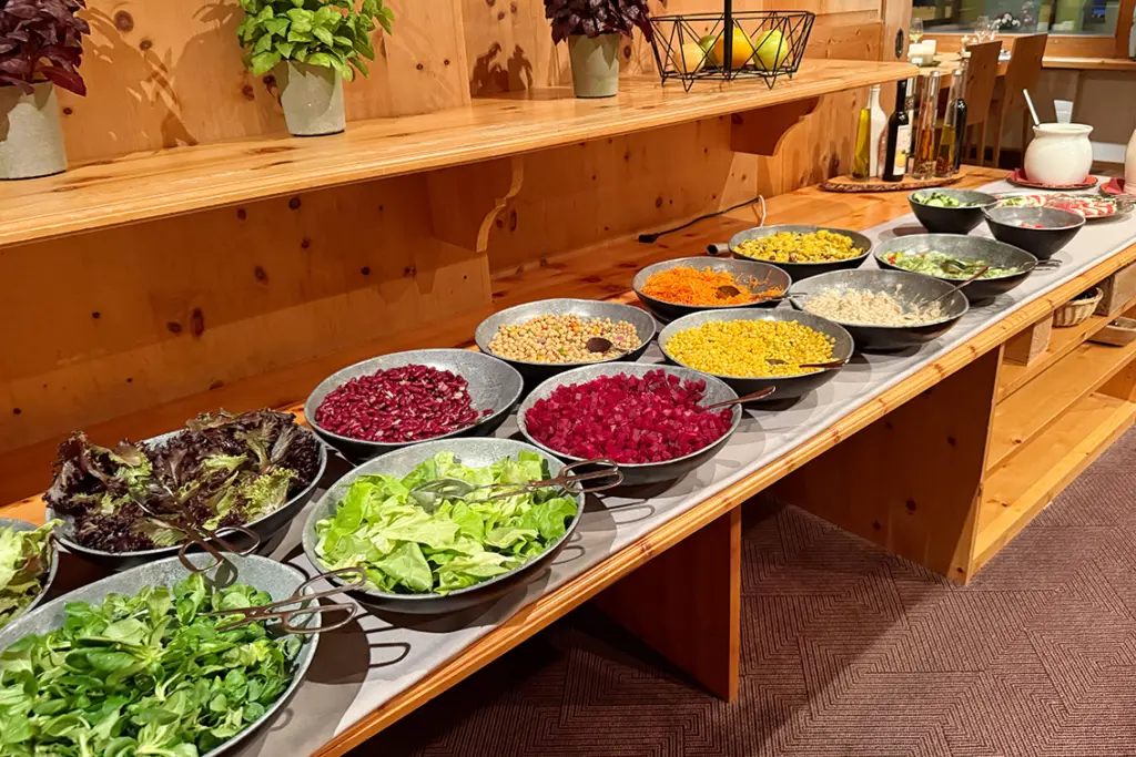 Als Veganerin bin ich, was die Küche eines Hotels betrifft sehr kritisch und ich muss sagen: dafür, dass das Waldhaus eigentlich keine vegane Verpflegung offiziell anbietet (laut Website nur vegetarisch) hat es sehr gut geklappt. Es gab jeden Abend ein 3-Gänge-Menü, plus großem Salatbuffet mit vielen Hülsenfrüchten. Perfekt, wenn man als sportlicher Veganerin auf seine Proteine achtet.