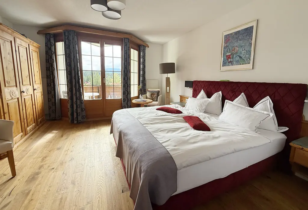 Groß und einladend, mit viel Stauraum für die vielen Utensilien und Kleidungsstücke, die zwei Läuferinnen mitgenommen haben. Unser Zimmer hatte einen wunderbaren Panoramablick: vor uns der Heidsee und Weitblick in die Lenzerheide, links das Rothorn, rechts Piz Scalottas.
