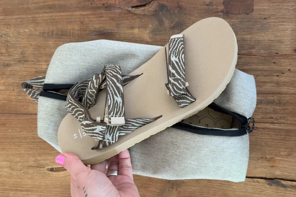 Im Sommer greife ich nicht nur zu Trailrunning Schuhen – manchmal dürfen es auch leichte Sandalen sein. Die Sahara Sandalen von Source passen da perfekt – mein Favorit ist das Modell im Zebra-Muster, das direkt auffällt und trotzdem zu fast allem passt.